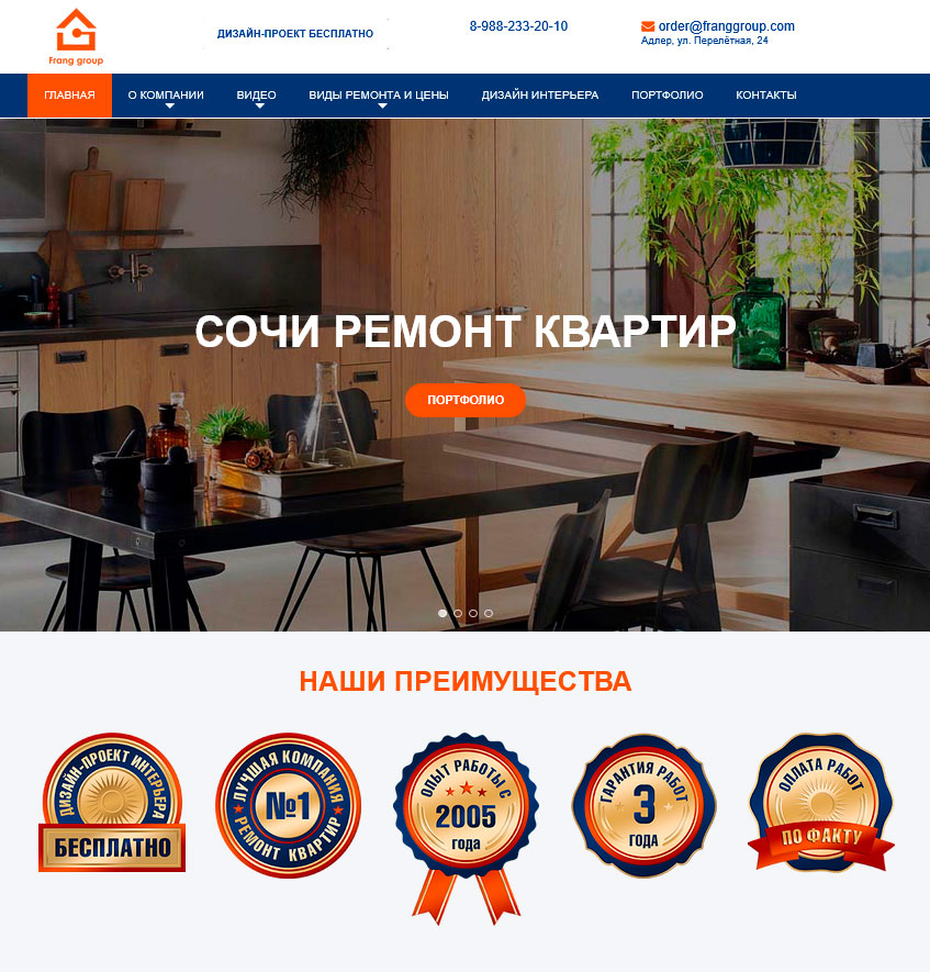 Сайт по ремонту квартир в городе-курорте Сочи создан для Адлерской строительной компании